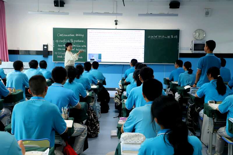 静宁一中互联网英语课堂的师生互动。郑芃生摄